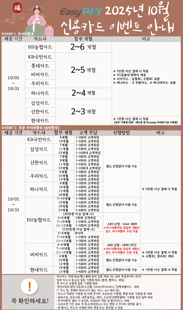 [공지] 2025년 10월 카드사 무이자 할부 이벤트 안내